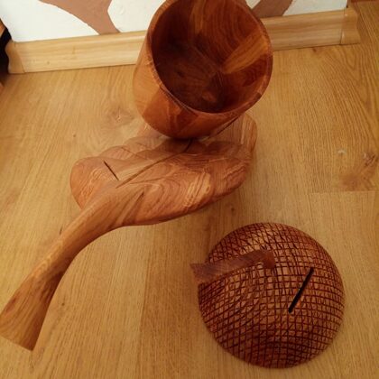 Pie mums iespējams pasūtīt izgatavošanai jebkādu koka iztrādājumu, sākot ar virtuves dēlīti un beidzot ar kokgriezumiem rotātu iekārtu. Veicam arī mēbeļu restaurāciju. Diemžēl gatavs uz vietas praktiski nav nekas, jo viss tiek izgatavots pēc individuālām vēlmēm un vajadzībām.
